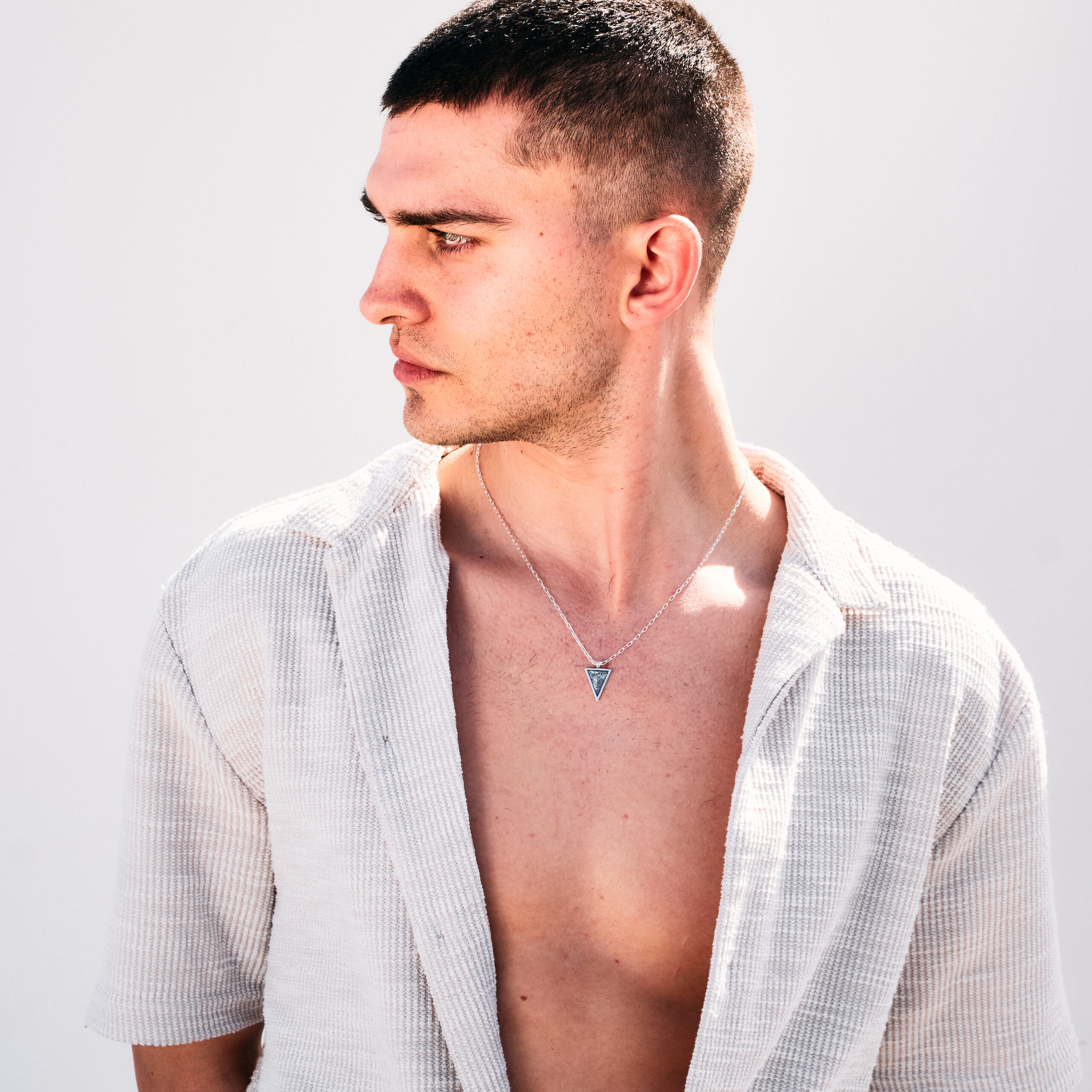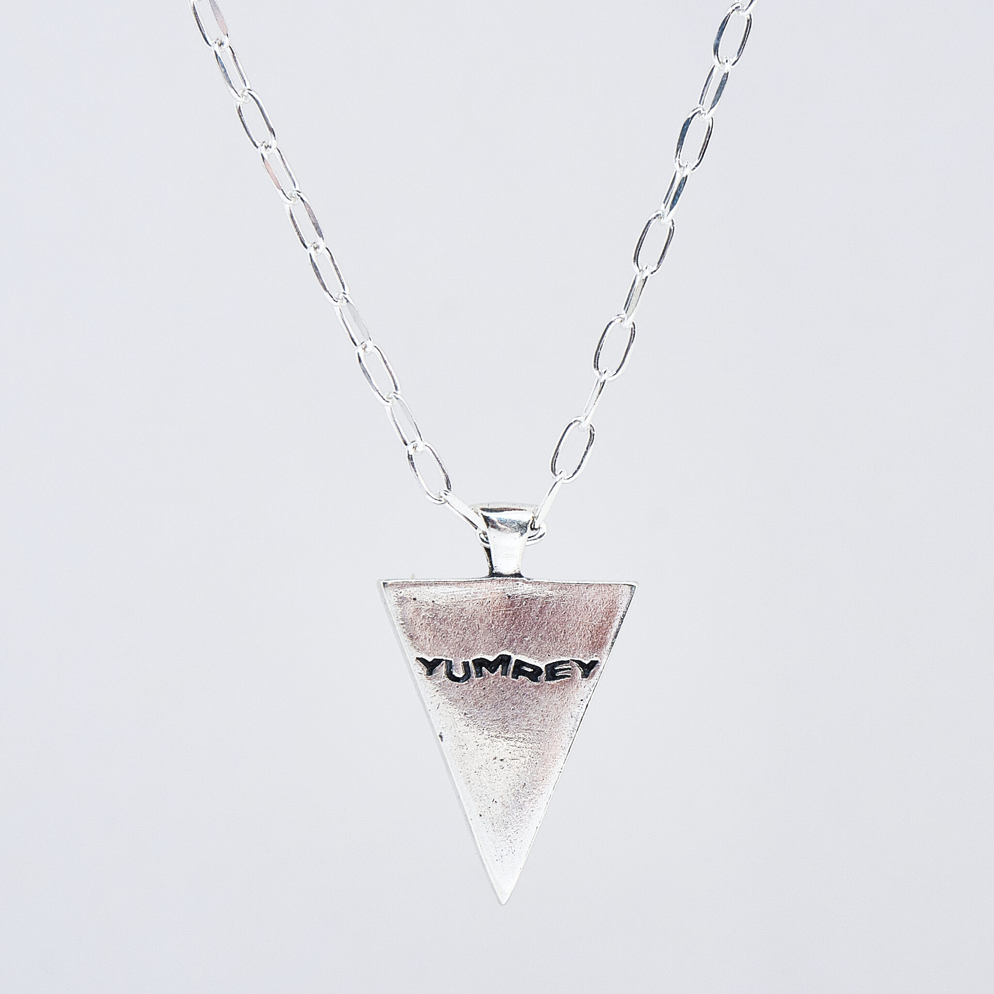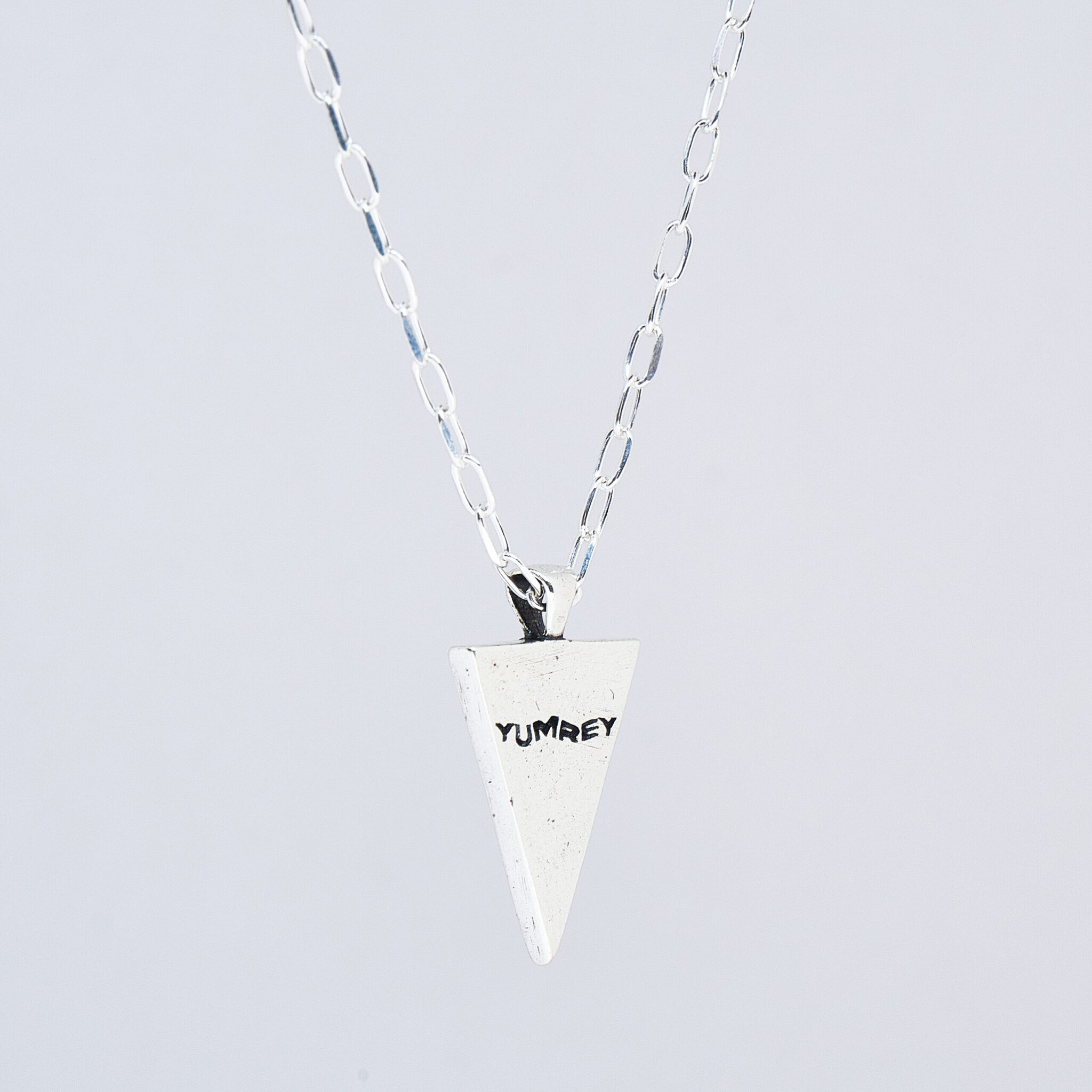 The pendant in the Bermuda necklace is in the shape of a triangle, which emits a wave inside, and has the inscription YUMREY engraved on the back.