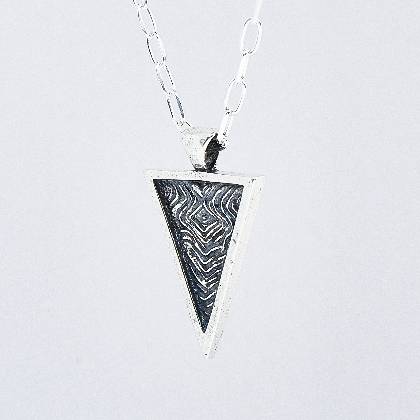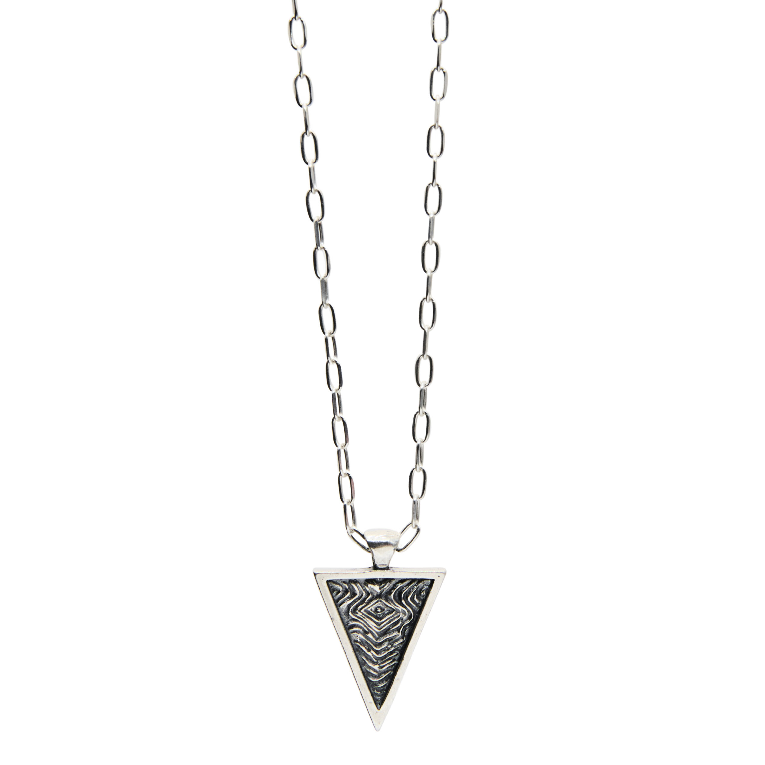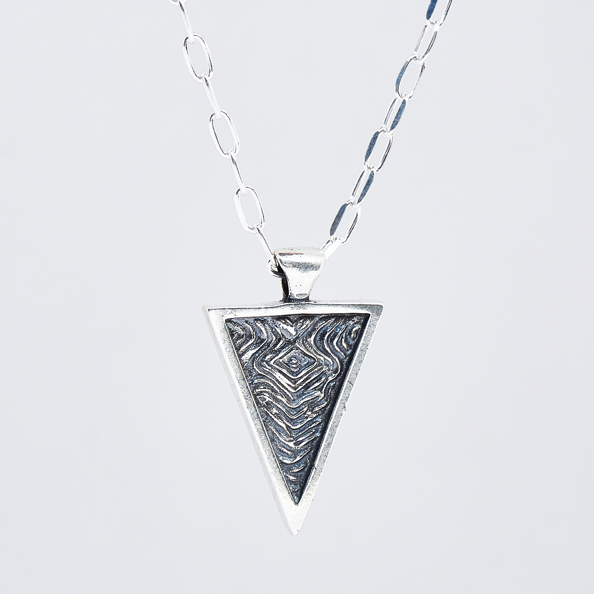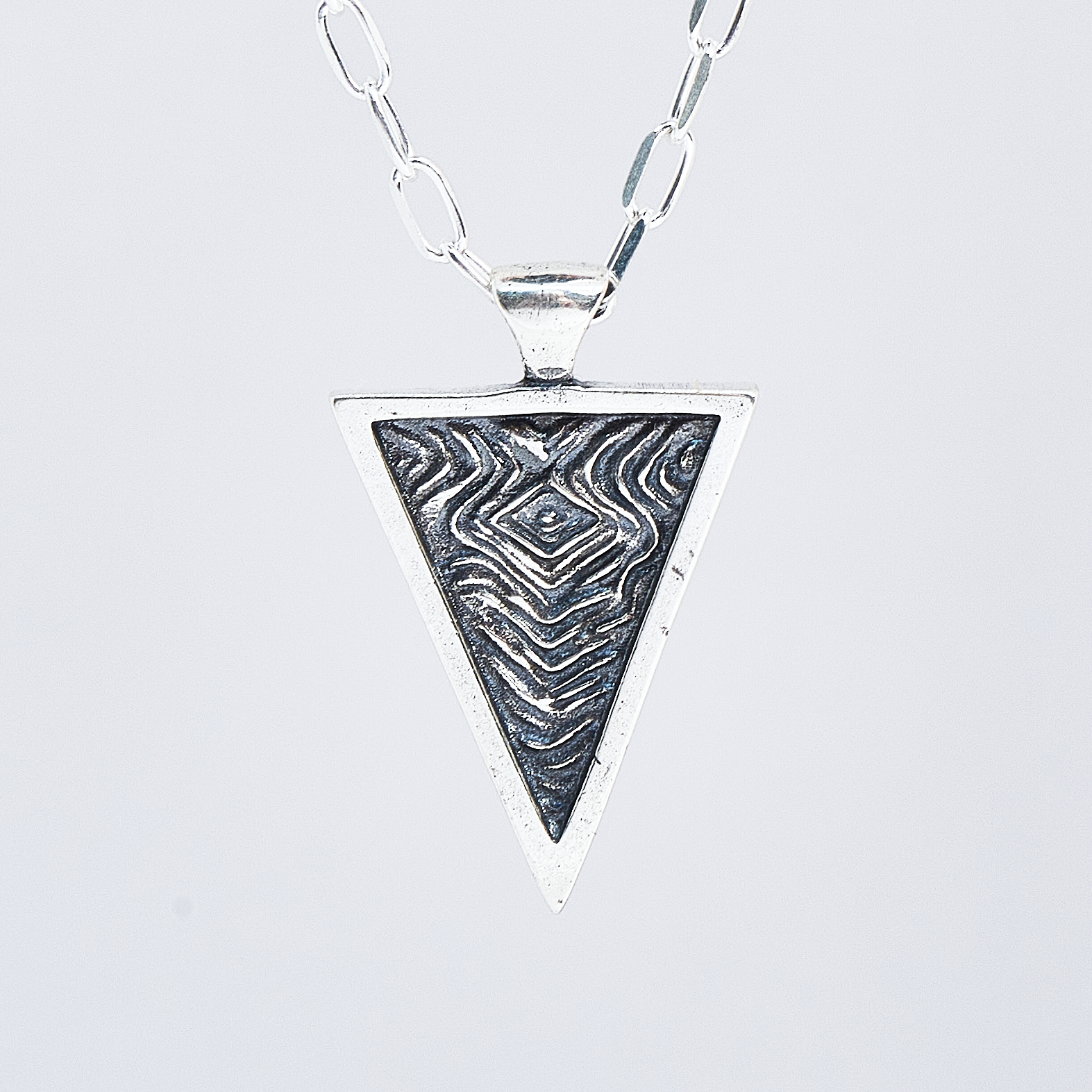 The pendant in the Bermuda necklace is in the shape of a triangle, which emits a wave inside, and has the inscription YUMREY engraved on the back.
