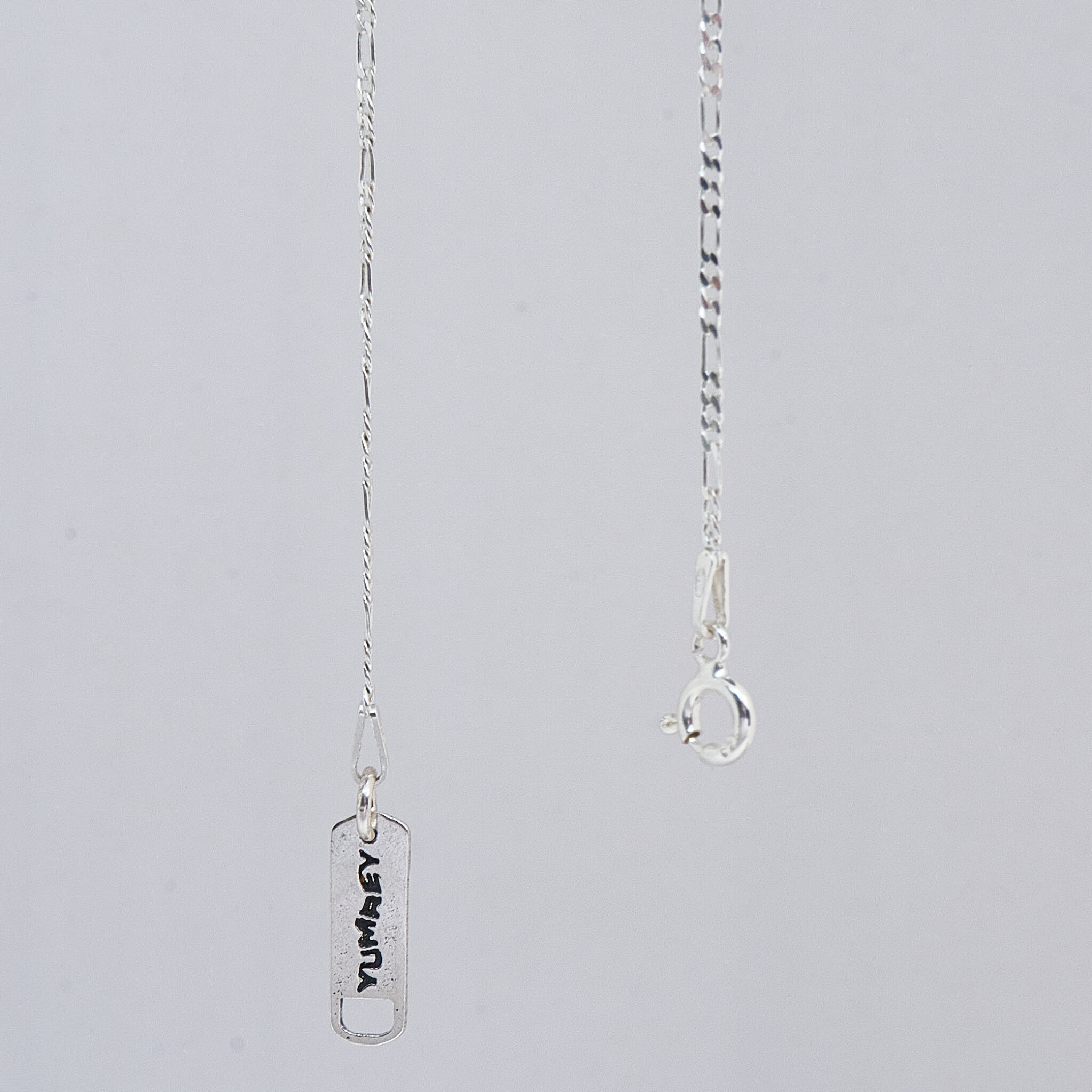 Harmony necklace made of 925 silver, 51 cm long, each chain has an extension that allows you to extend the necklace by up to 5 cm. The chain ends with an approximately 1-centimeter plaque engraved with the YUMREY brand name. The necklace is the perfect element of any summer styling.
