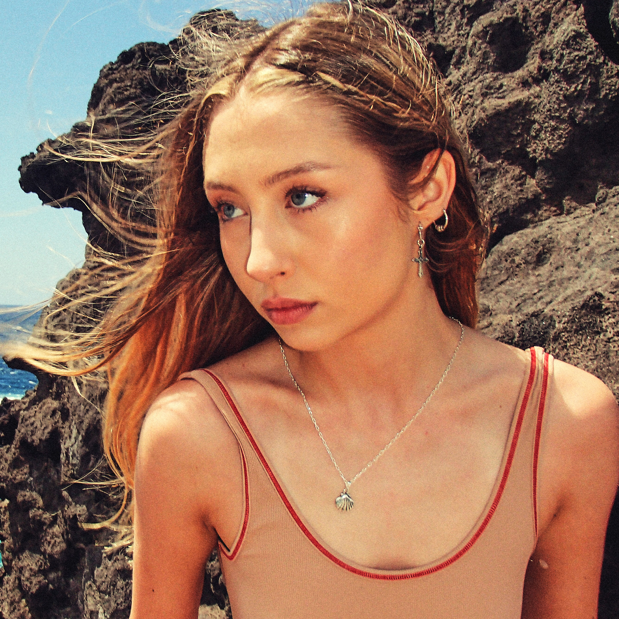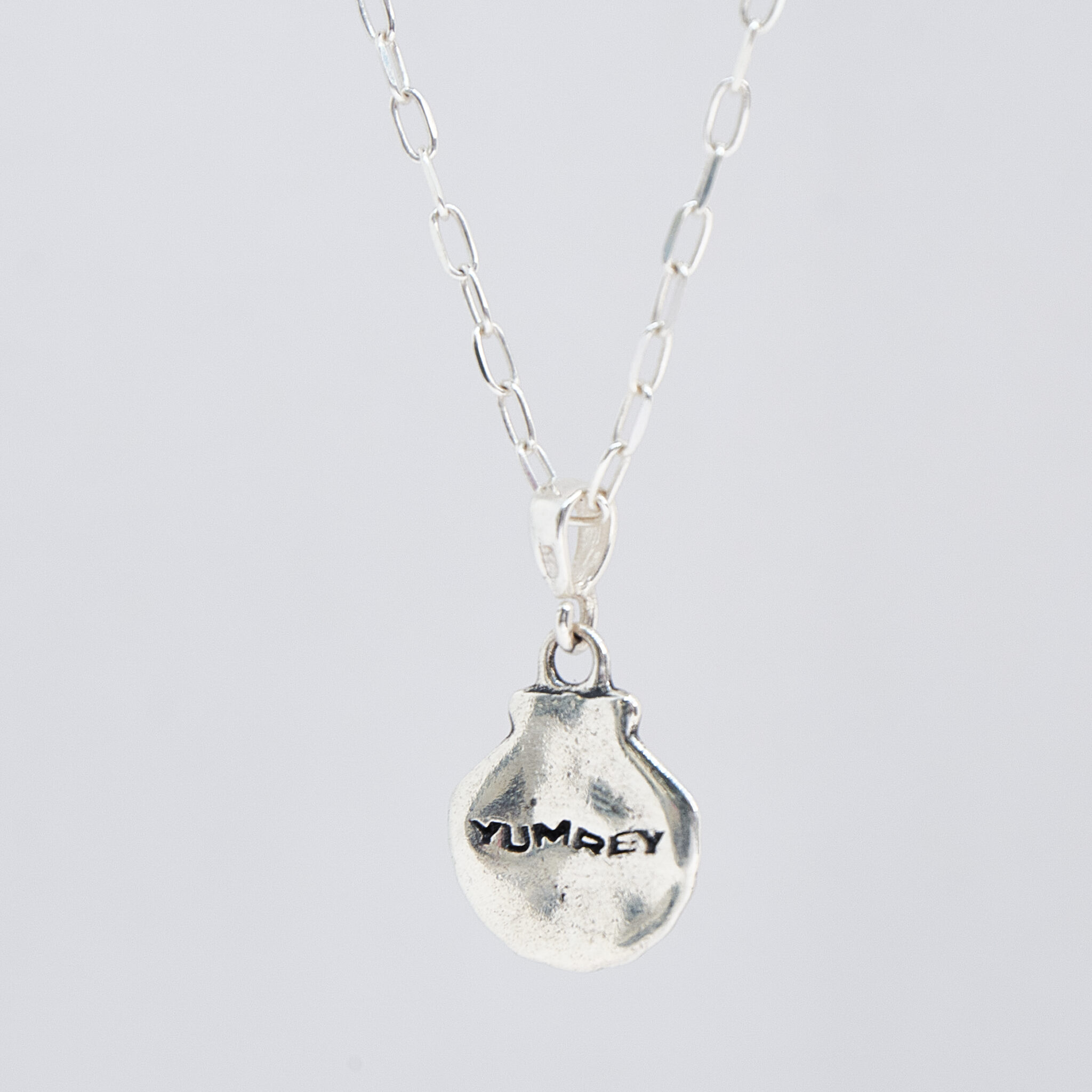 The pendant in the Venus necklace is in the shape of a shell, with the inscription YUMREY engraved on the back.