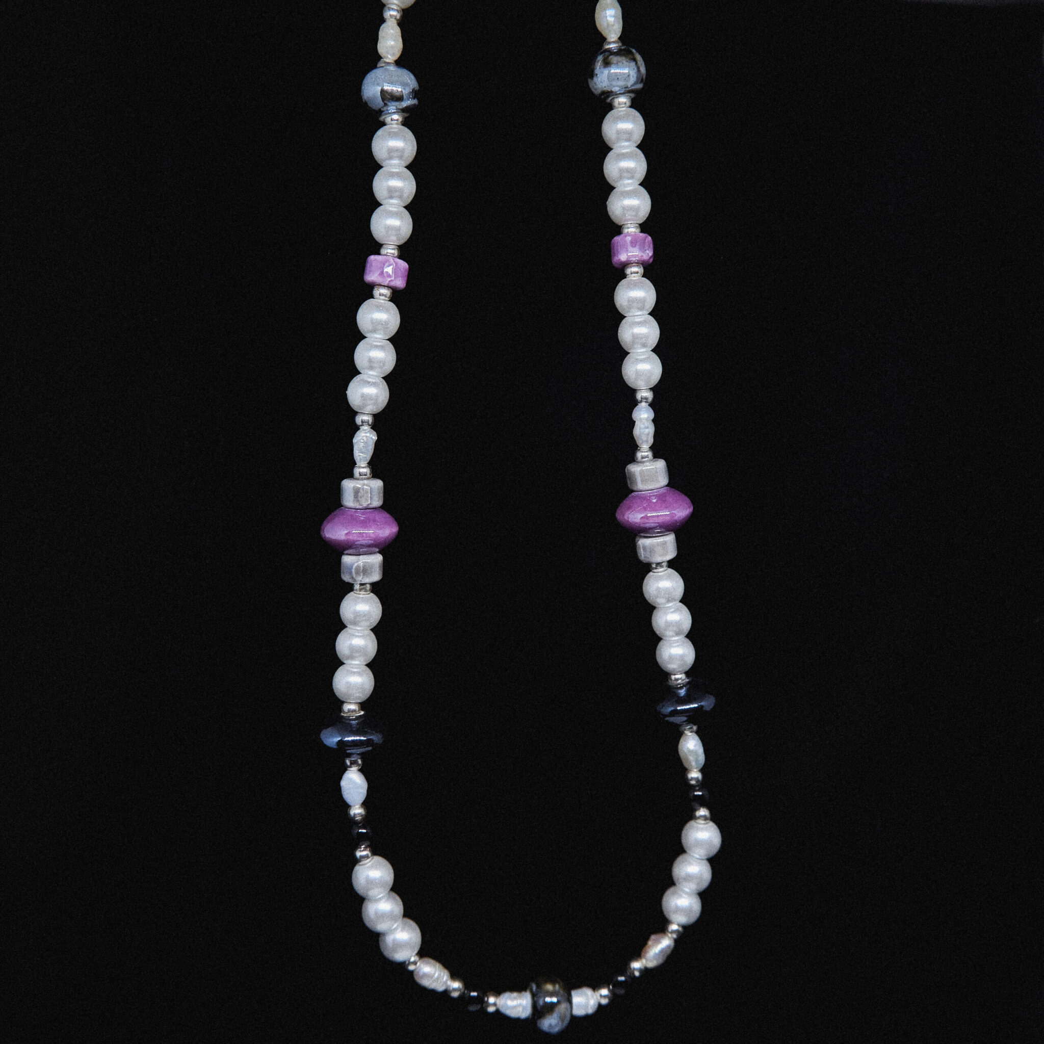 Le collier La Playa Purpura est orné de perles ethniques et d’éléments colorés, parfait pour l’été. Il est composé de plusieurs éléments, dont des perles de culture naturelles, des perles de verre, des pierres, des perles en céramique et un fermoir en acier inoxydable. Il est décliné dans des tons violets. Il mesure 41 cm de long et dispose d’une extension permettant d’ajouter 5 cm de longueur. Chaque collier est signé d’une plaque de 1 cm portant le nom de la marque YUMREY.