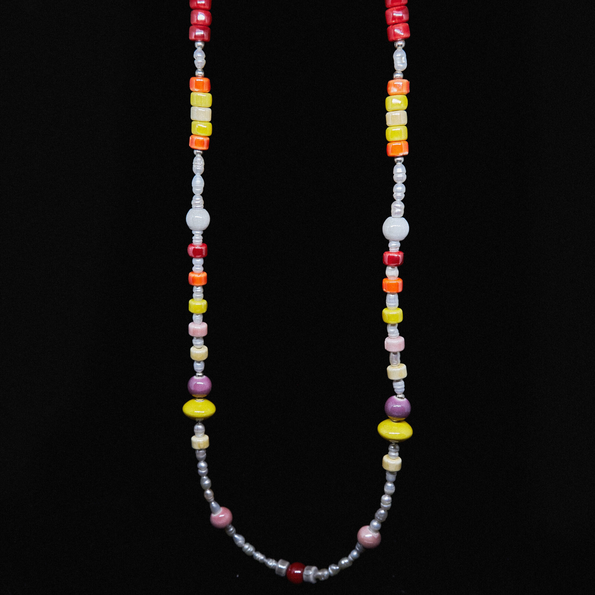 Le collier La Playa Roja est orné de perles ethniques et d’éléments colorés, parfaits pour l’été. Il est composé de plusieurs éléments, dont des perles de culture naturelles, des perles de verre, des pierres, des perles en céramique et un fermoir en acier inoxydable. Il est décliné dans des tons rouges. Il mesure 44 cm de long et se termine par une extension permettant d’ajouter 5 cm. Chaque collier est signé d’une plaque d’un centimètre portant le nom de la marque YUMREY.