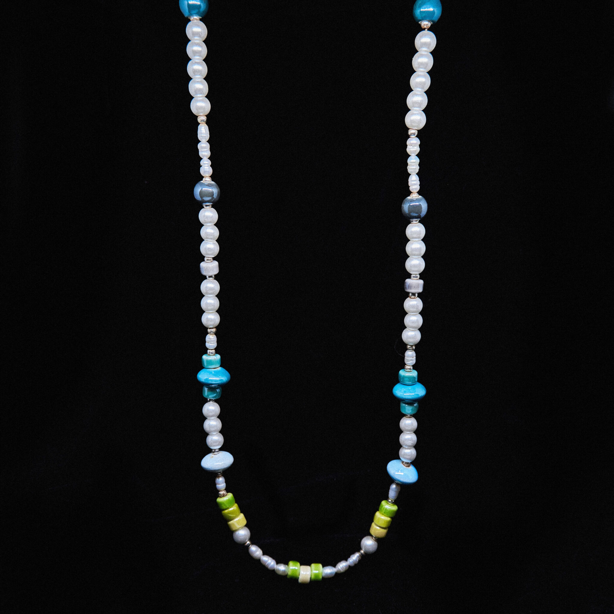 Le collier La Playa Verde, orné de perles ethniques et d’éléments colorés, est parfait pour l’été. Il est composé de plusieurs éléments, dont des perles de culture naturelles, des perles de verre, des pierres, des perles en céramique et un fermoir en acier inoxydable. Il est décliné dans des tons verts. Il mesure 44 cm de long et se termine par une extension permettant d’ajouter 5 cm de longueur. Chaque collier est signé d’une plaque d’un centimètre portant le nom de la marque YUMREY.