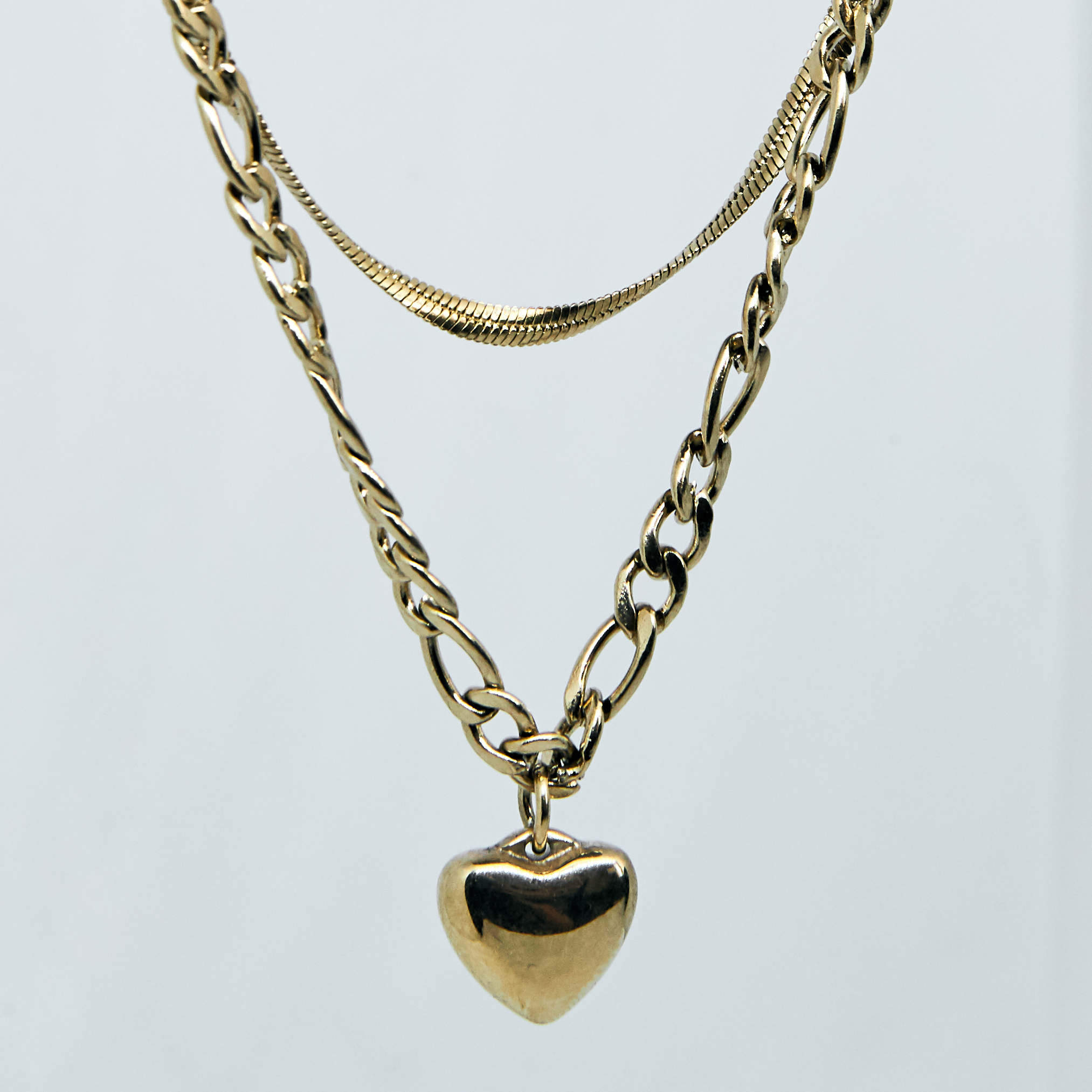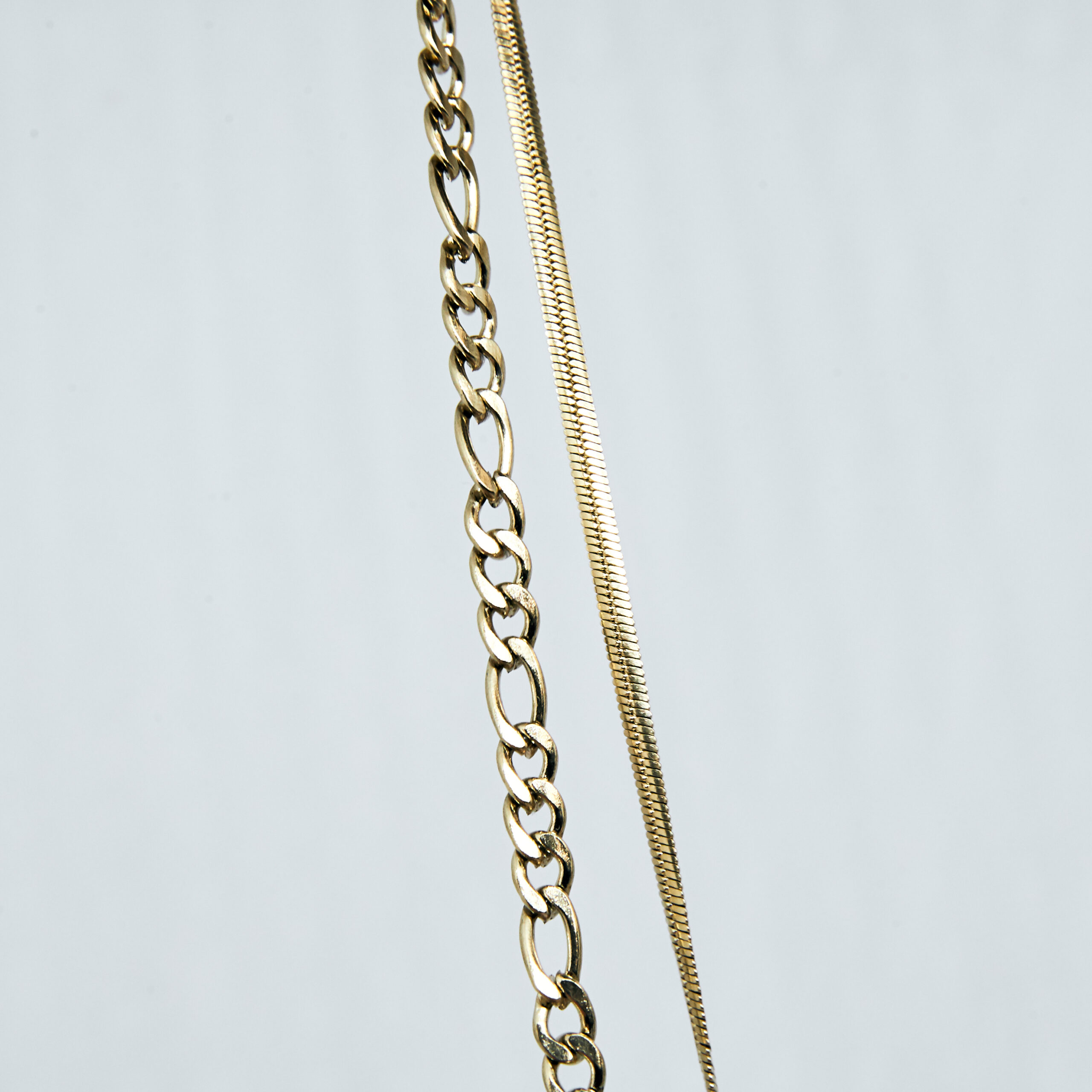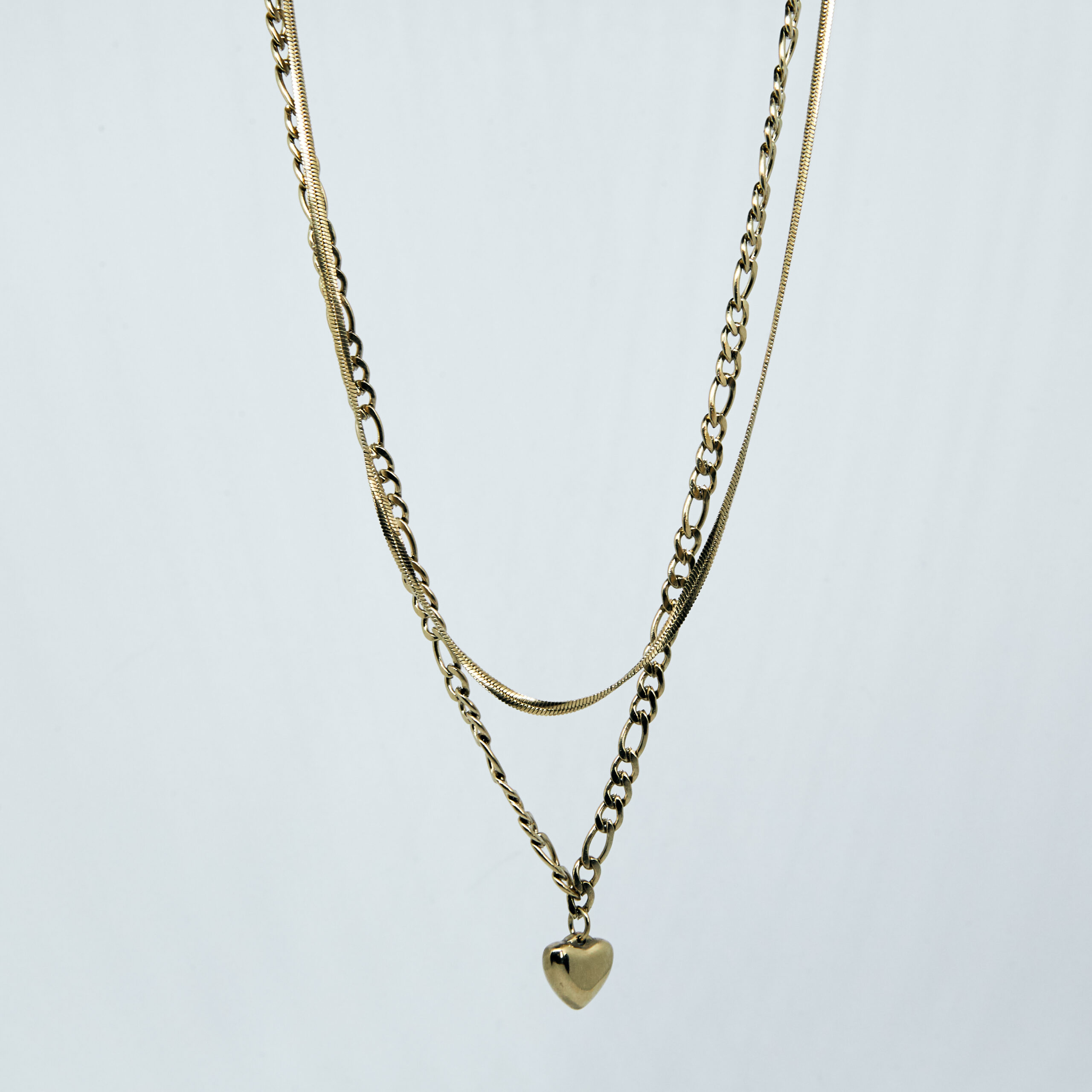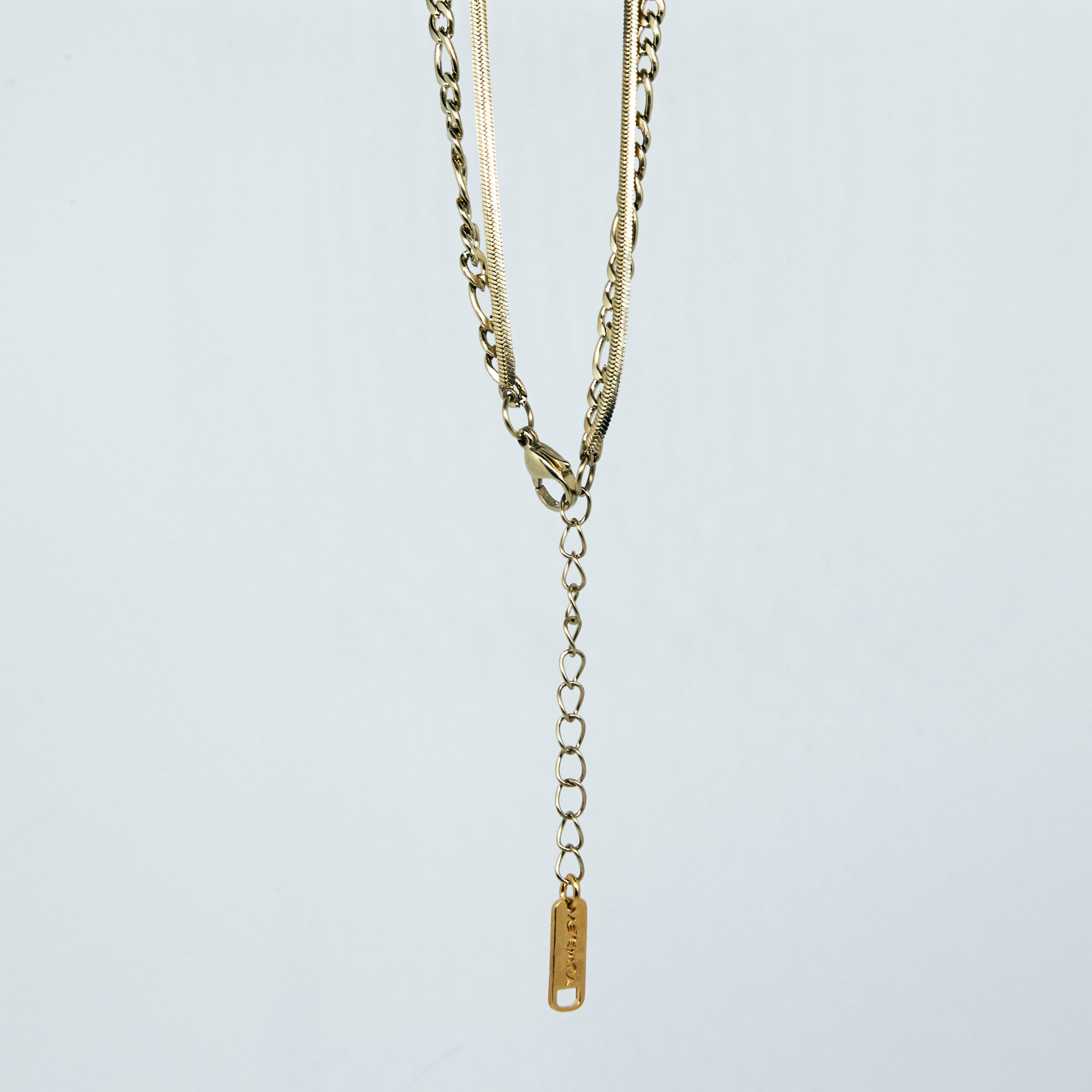Celebrytka ze stali chirurgicznej złożona z dwóch delikatnych naszyjników połączonymi w jeden komplet. Całkowita długość naszyjnika to 42 cm.