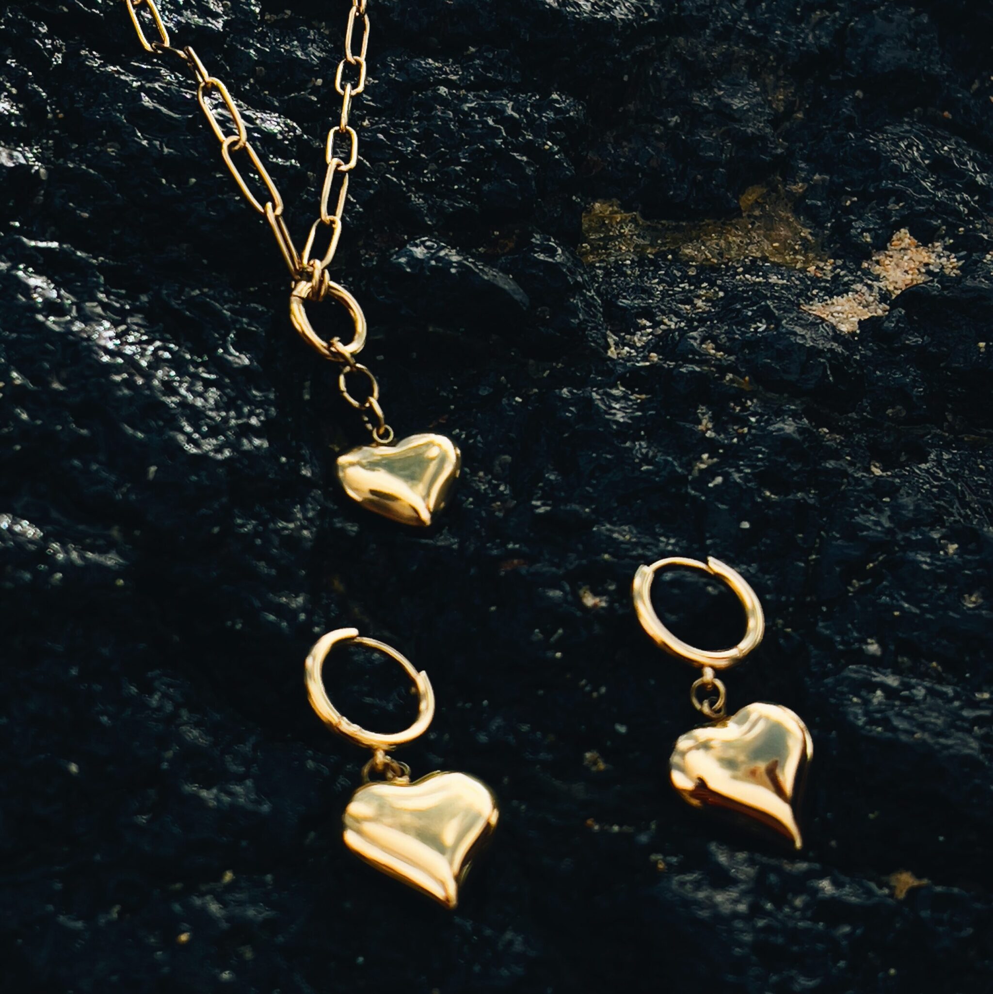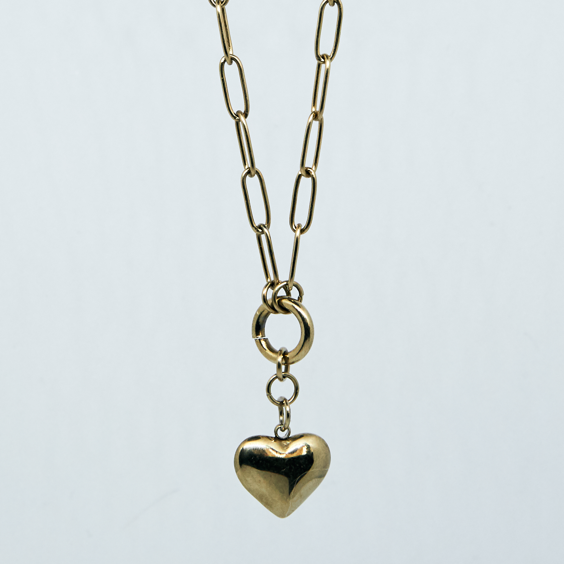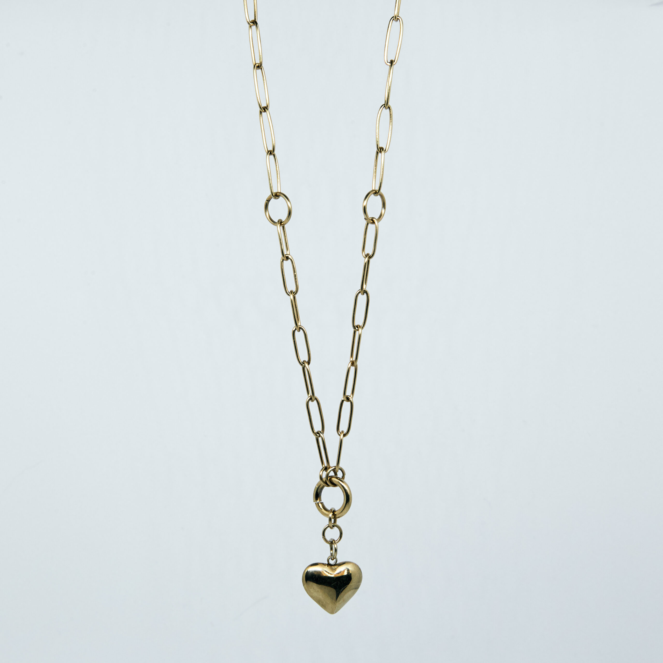 Naszyjnik ze stali chirurgicznej w kolorze złota o długości 40 cm z zawieszką w kształcie serca.