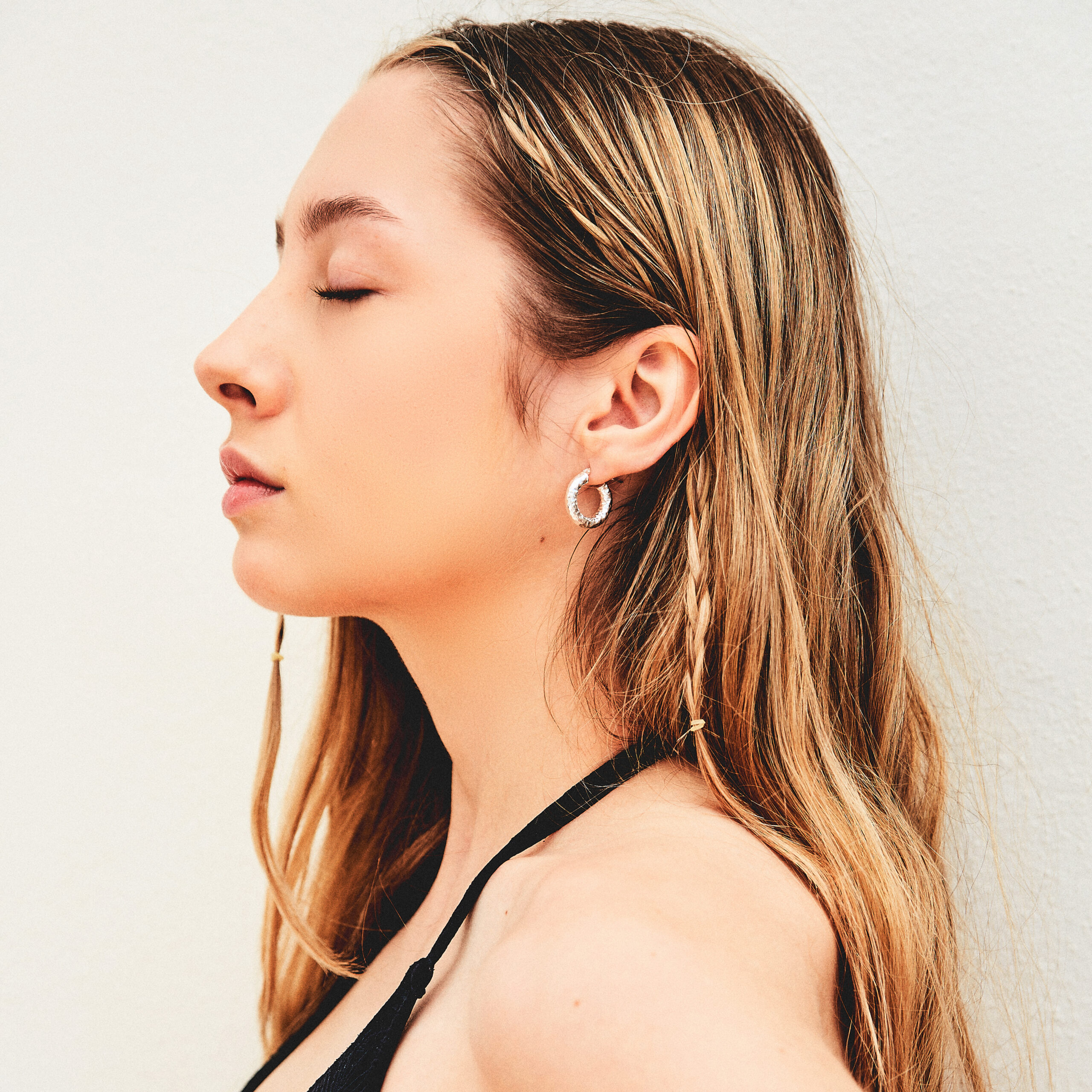 Srebrne kolczyki Luminary są częścią naszej kolekcji ENDLESS SUMMER.