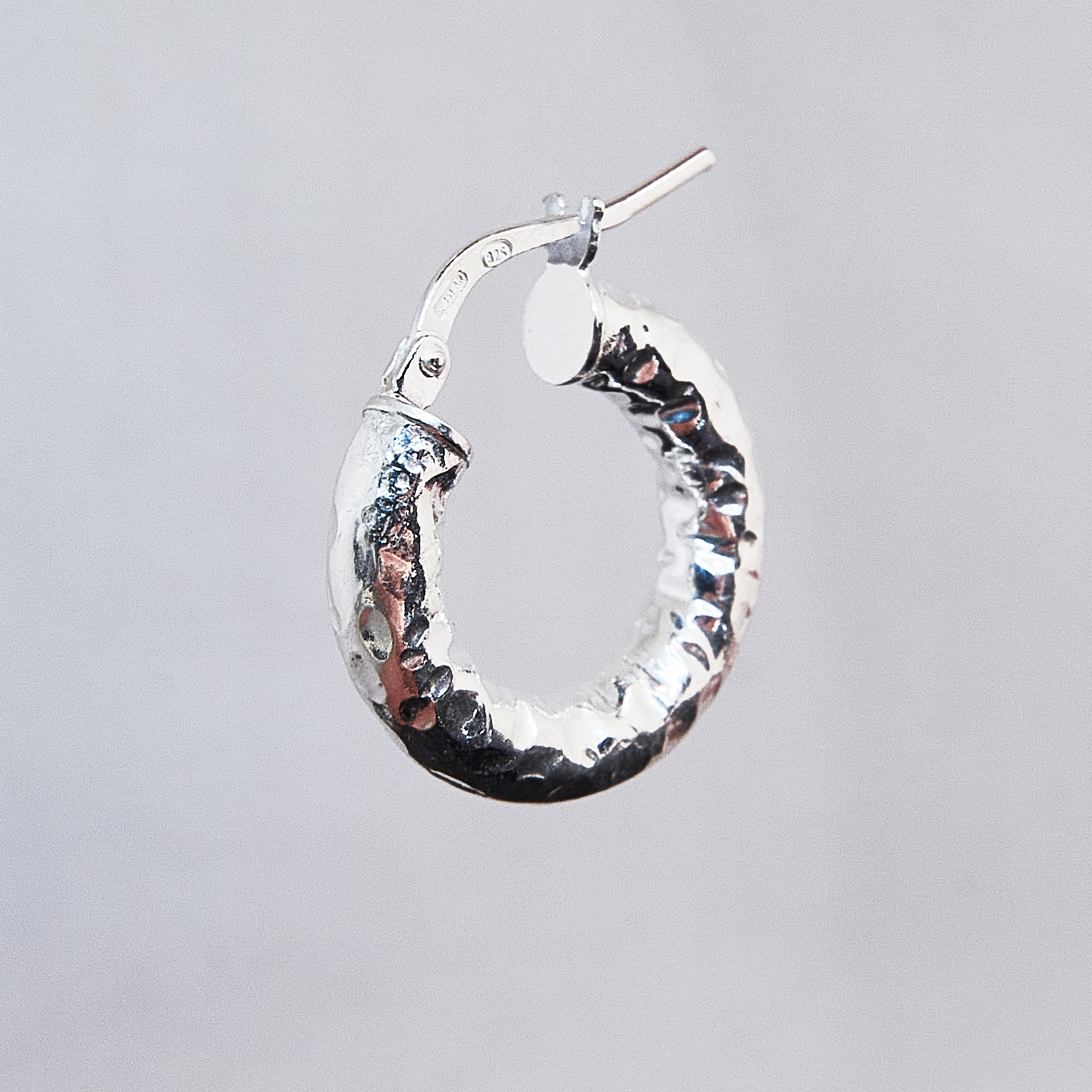 Kolczyki Luminary starannie wykonaliśmy z wysokiej jakości srebra, które delikatnie lśni. Mają minimalistyczny, a jednocześnie efektowny design. Składają się z lekko powyginanych, okrągłych elementów, które pięknie odbijają światło. Ten delikatny kształt dodaje kolczykom unikalności i subtelności.