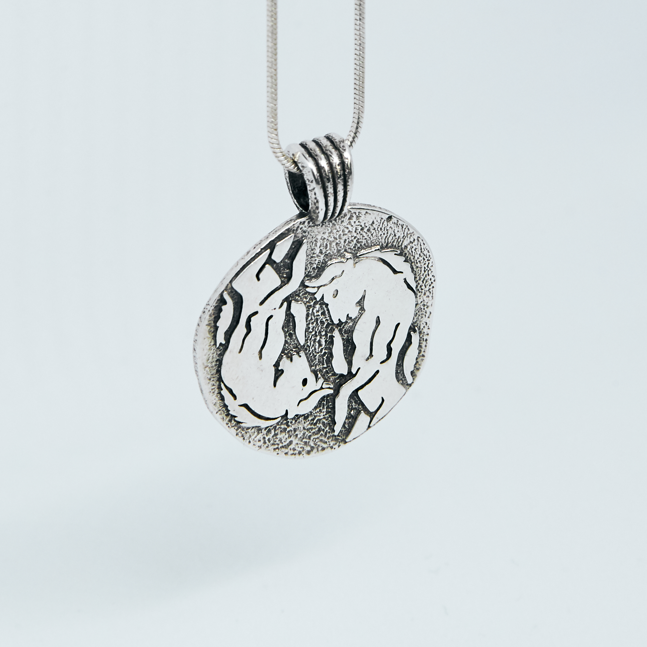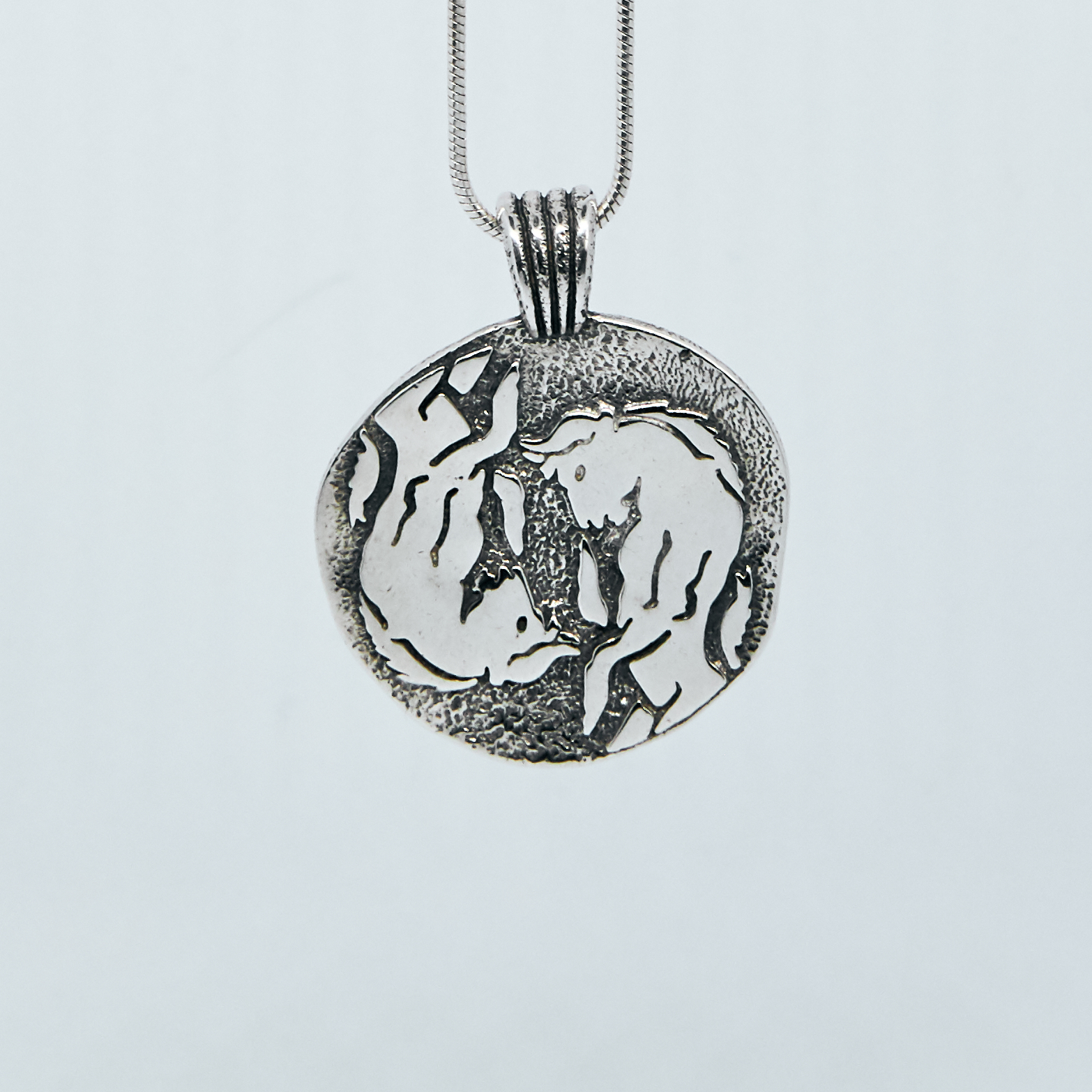 Naszyjnik inspirowany mitologią grecką. Można nosić go z obu stron. Zawieszka z wizerunkiem minotaura na przodzie i labiryntem na rewersie. Srebro 925.