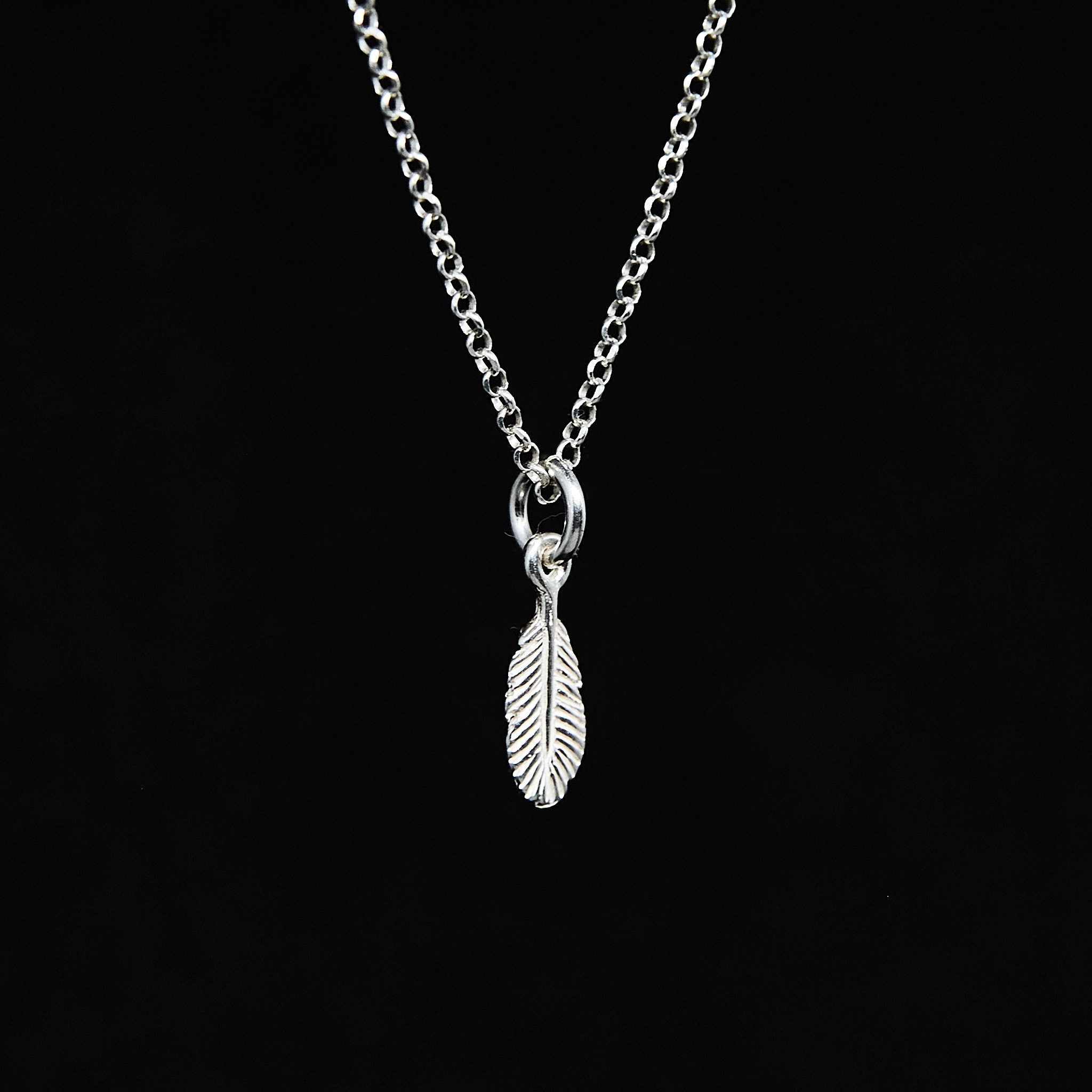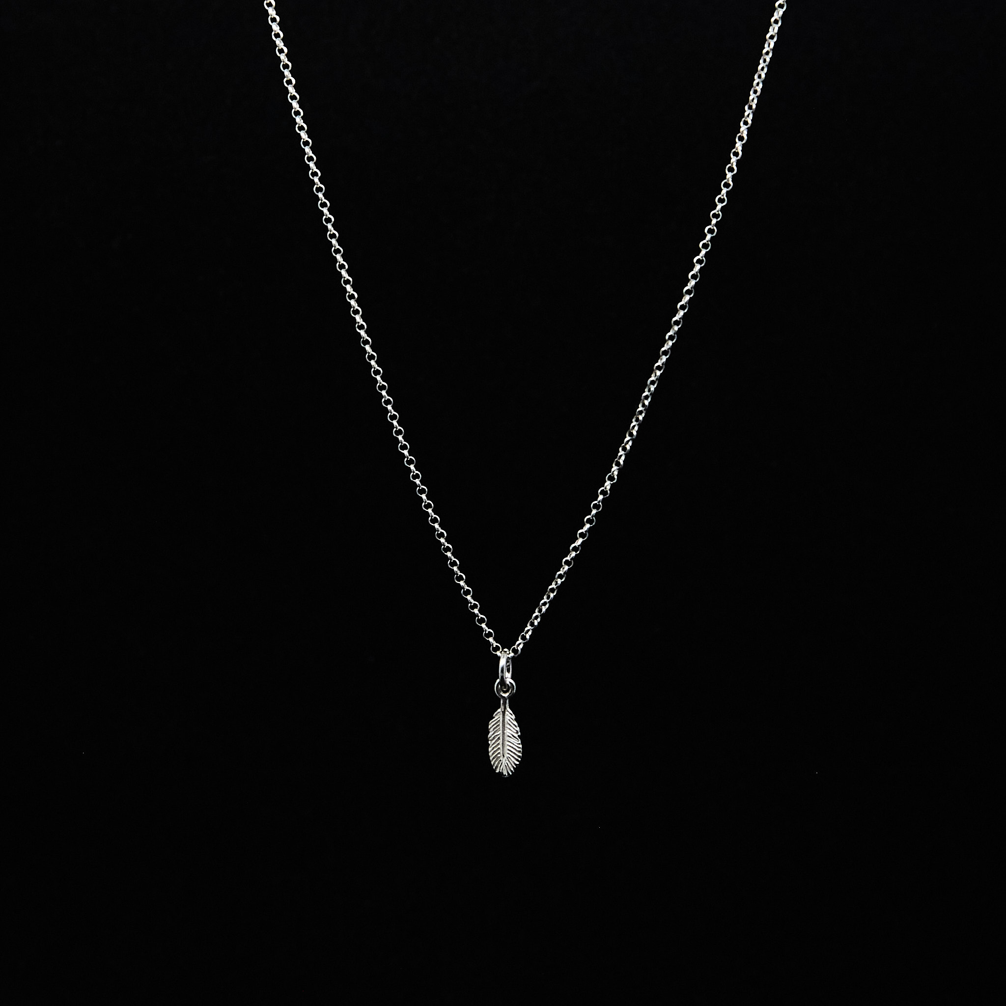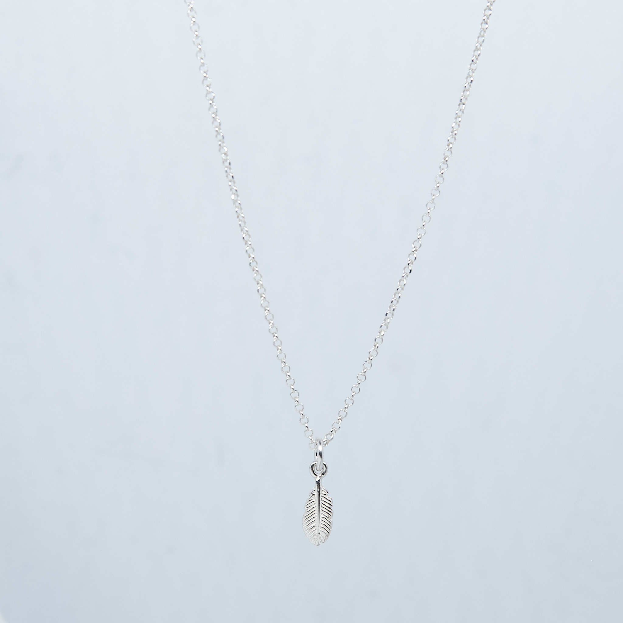 Delikatny naszyjnik z zawieszką w kształcie pióra.