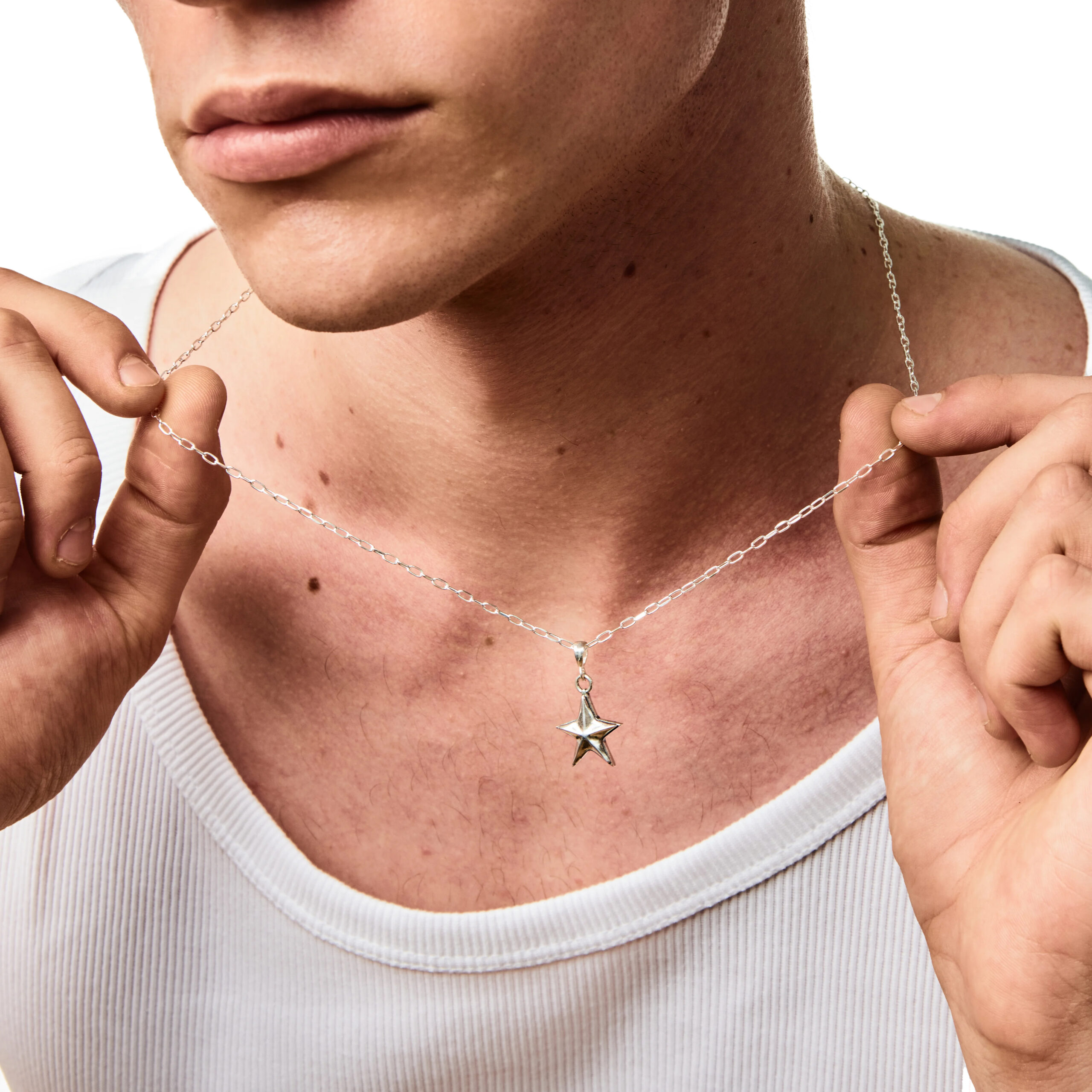 Naszyjnik Star wykonany ze srebra o stopie 925 o długości 51 cm, każdy łańcuszek posiada przedłużkę, dzięki której można wydłużyć naszyjnik, aż o 5 cm. Łańcuszek zakończony jest około 1 centymetrową plakietką z wygrawerowaną nazwą marki YUMREY. Naszyjnik jest idealnym elementem każdej letniej stylizacji. Zawieszka w naszyjniku Star jest w kształcie gwiazdki, na tyle ma wygrawerowane logo YUMREY.