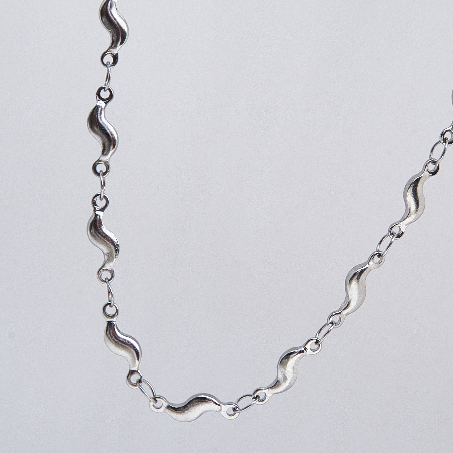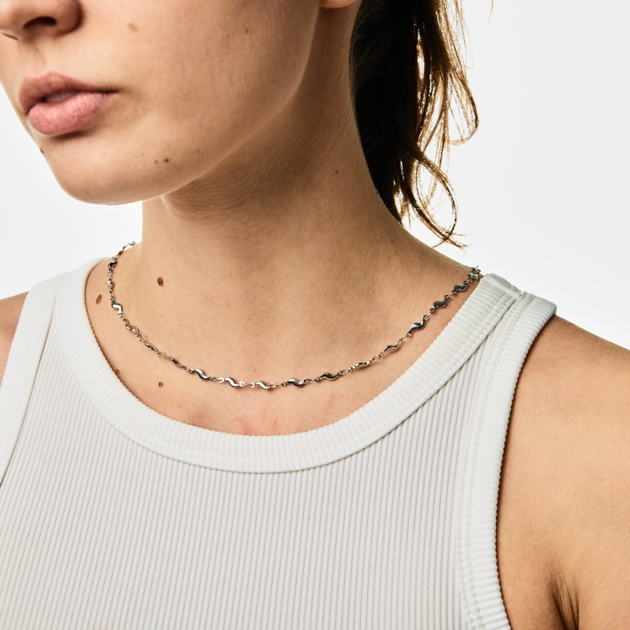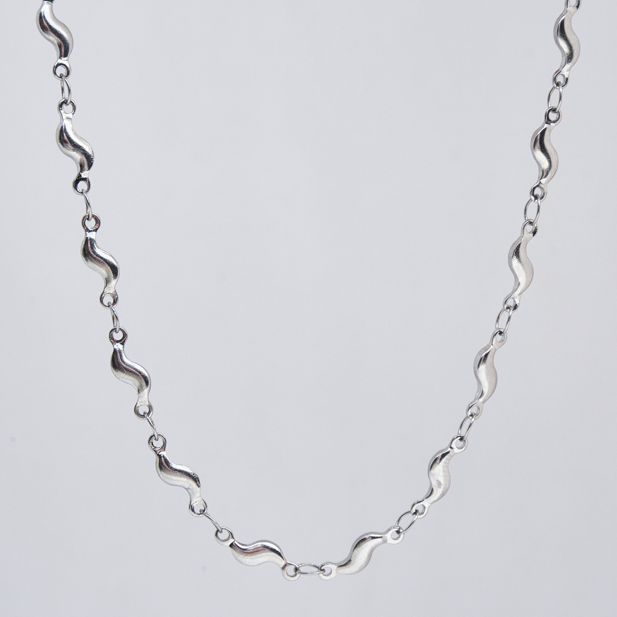 Naszyjnik Symphony, wykonany z trwałej stali chirurgicznej, ma 43 cm długości. Na jego końcu znajdziesz plakietkę z wygrawerowaną nazwą YUMREY, która umożliwia regulację długości o 1 cm. Delikatny splot przypomina małe fale.