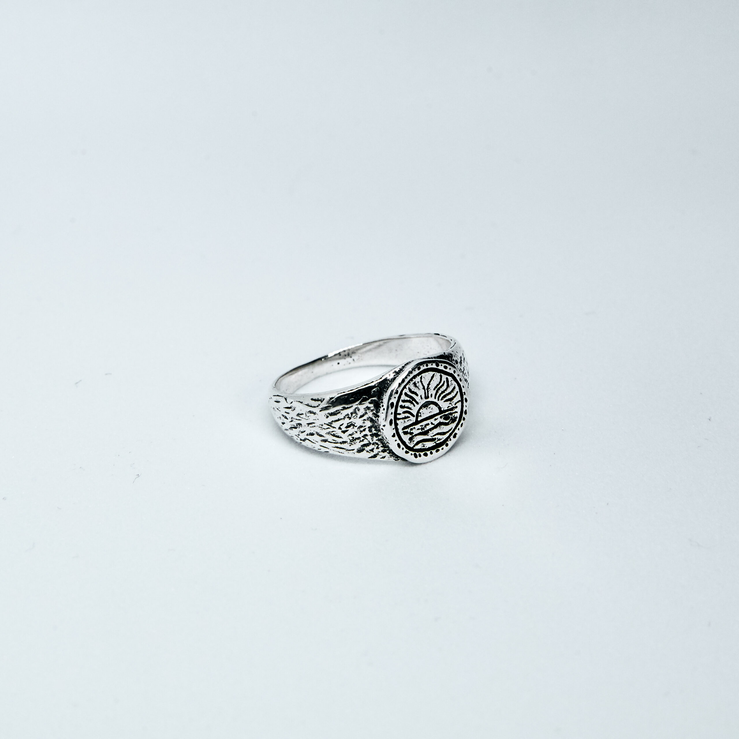 Srebrny pierścionek SUNRISE z unikalnym letnim motywem wschodzącego słońca. Mały pierścionek w kształcie sygnetu dla niej i dla niego. Wykonany w całości ze srebra 925. Stwórz swój własny zestaw razem z innymi pierścionkami z naszej kolekcji co pozwoli Ci na stworzenie oryginalnego wizerunku.